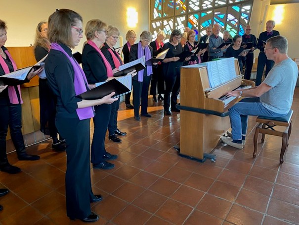 frühere Chormitglieder den Weg nach Bergdietikon gefunden hatten und mit uns die gute Akustik der modernen Kirche genossen.
