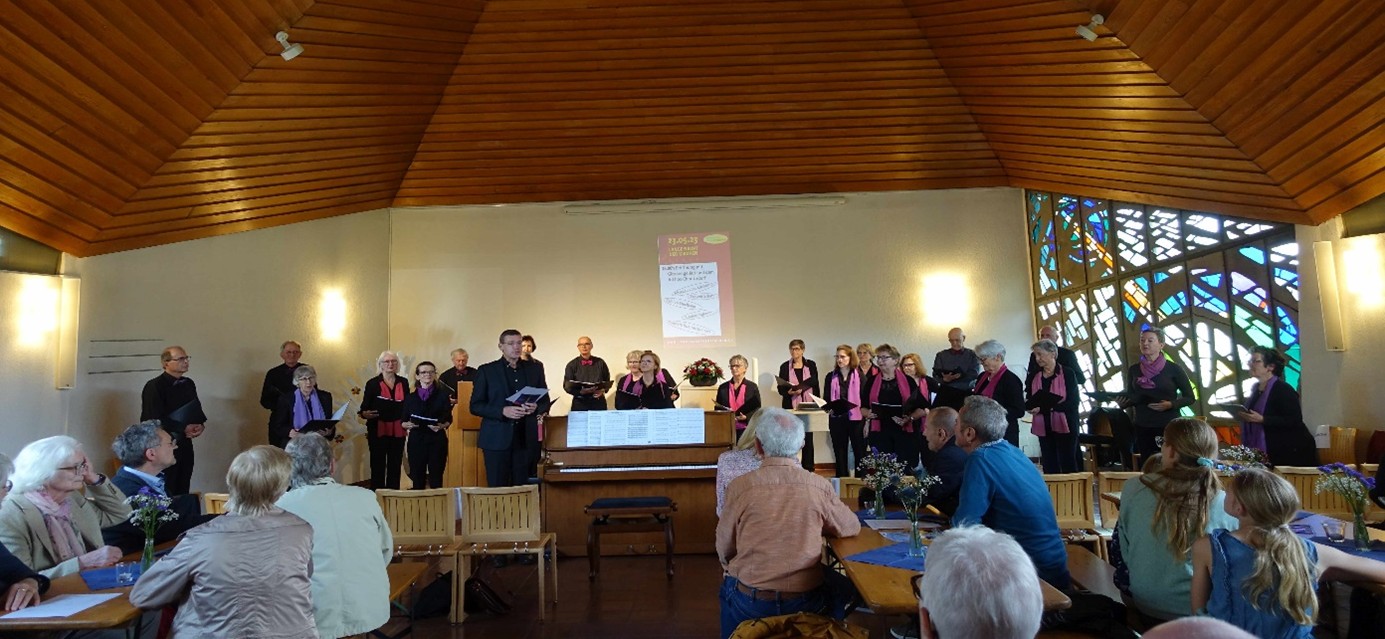 Der zweite Teil, den wir als Chor teilweise geordnet nach Stimmlage und durcheinander sangen, betonte dann mehr den kirchlichen Aspekt der