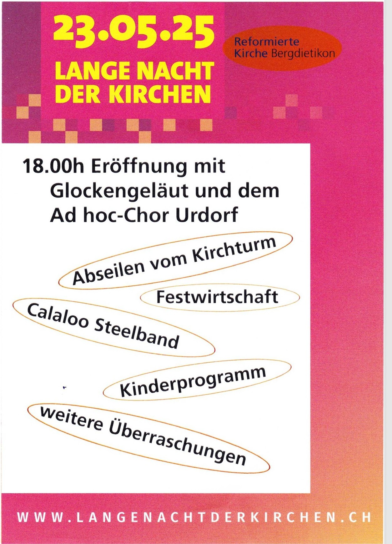 in Bergdietikon war besetzt, als das Glockengeläut noch in der Abendsonne den Frühjahrsabend eröffnete. Besonders freuten wir uns, dass einige